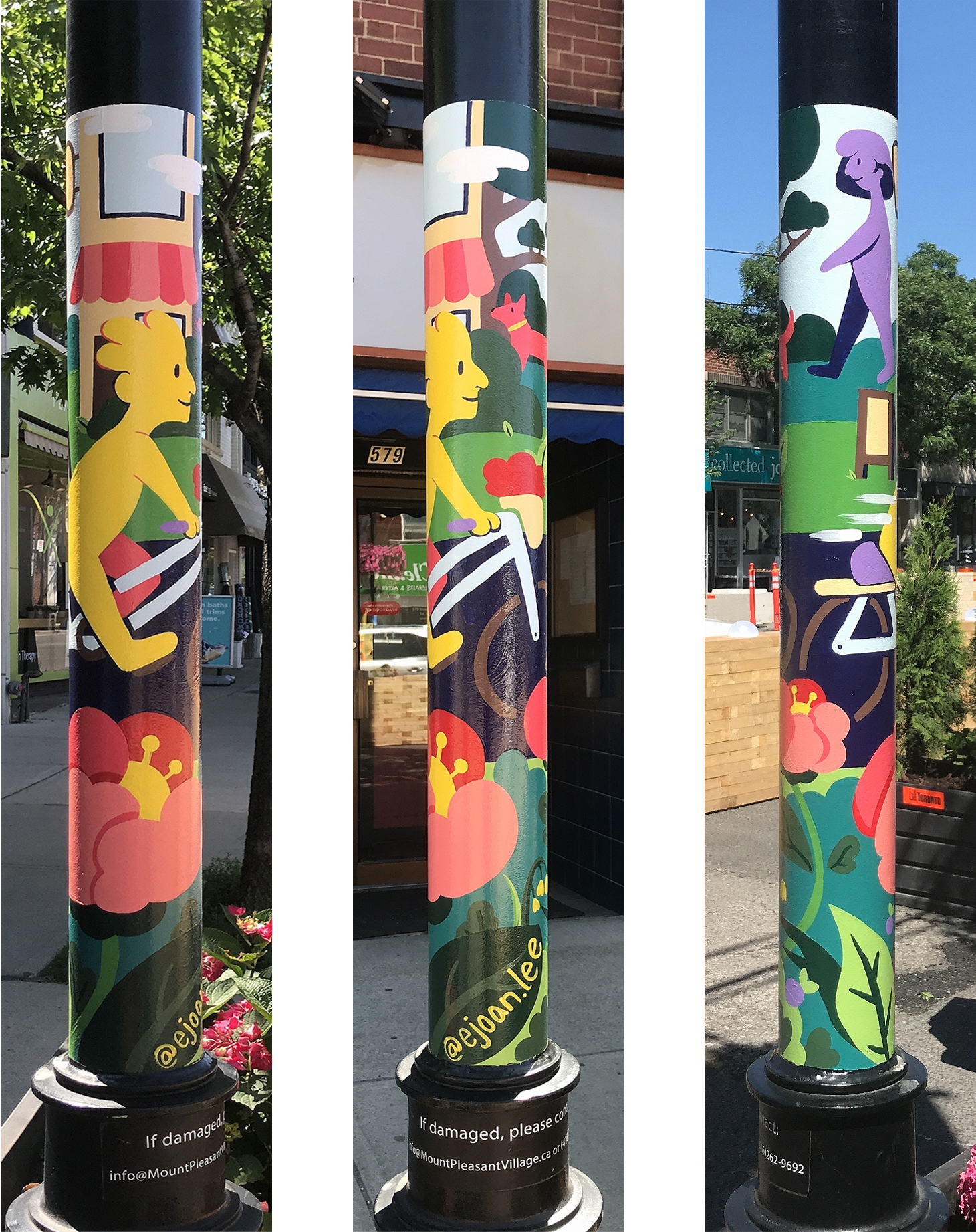 Painted street lamp mural for the Mount Pleasant BIA, City of Toronto.